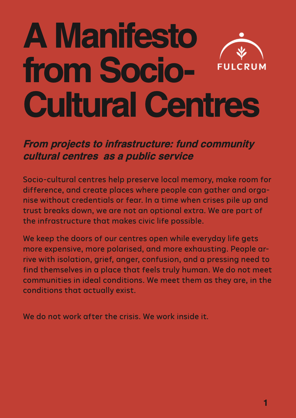 Wir wollen, dass soziokulturelle Zentren als zivilgesellschaftliche Infrastruktur behandelt werden. Wir wollen eine Finanzierung und Verwaltung, die der Realität entsprechen, nicht nur Papierkram.