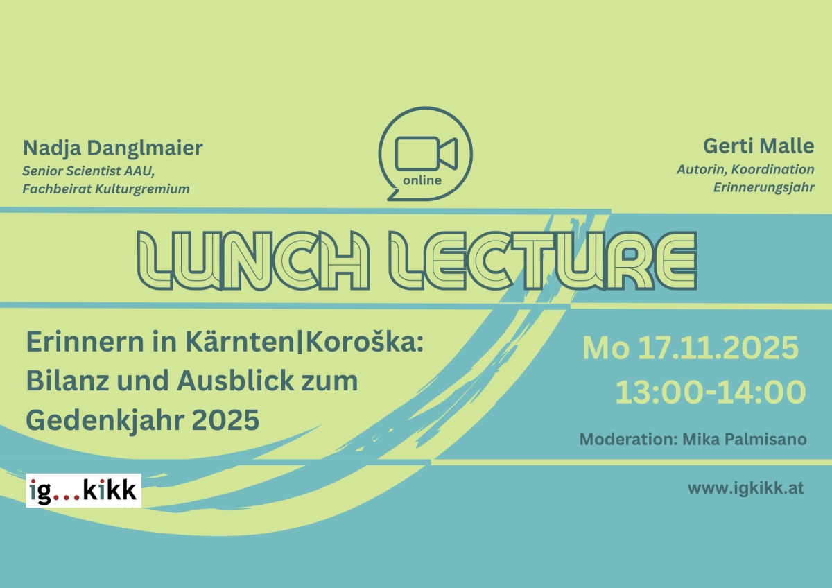In dieser Lunch Lecture werfen Gerti Malle und Nadja Danglmair einen vielschichtigen Blick auf das Erinnerungsjahr 2025 in Kärnten/Koroška – ein Jahr, das von bemerkenswerten Impulsen getragen war.
